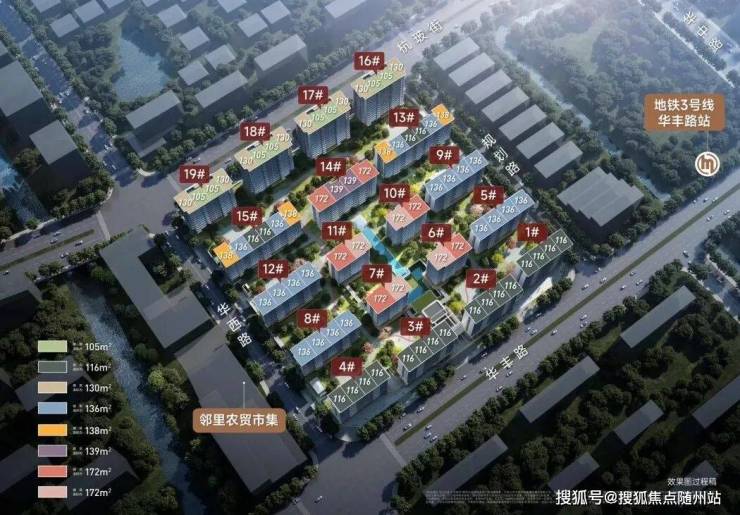 项目占地51304㎡,总建筑面积约14.94万㎡,容积率仅1.9,规划建设19幢9-14层住宅(其中15幢10-11层洋房,4幢14层小高层),总计约720户,主打116-172㎡四房改善户型。