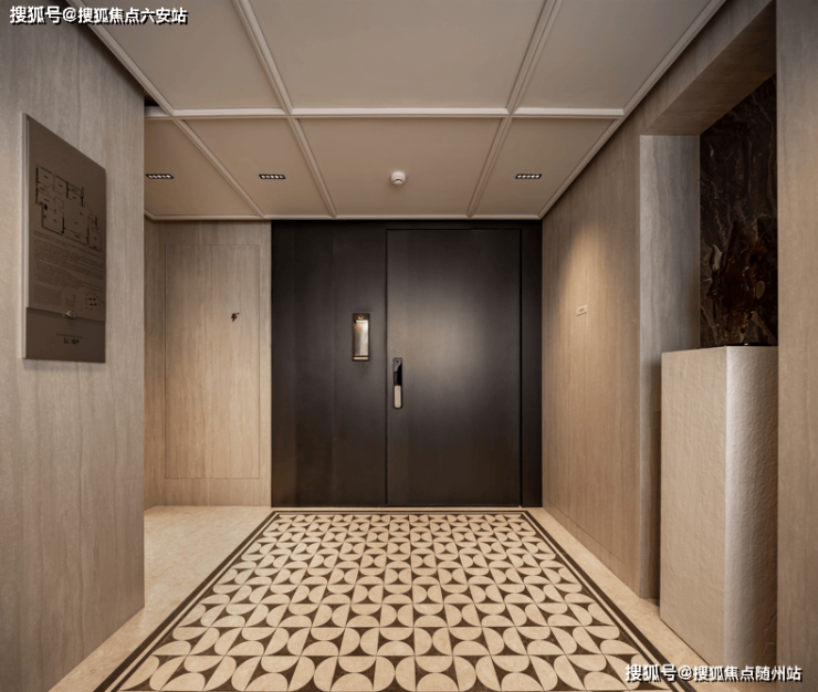 这款建面约215方无论是空间的设计感,还是尺度感,都大幅度超越。电梯门打开的瞬间,首先映入眼帘是宽敞明亮的电梯厅,心情都变得舒畅。类一梯一户的设计,这几乎是业主的独享空间,是第一道玄关。