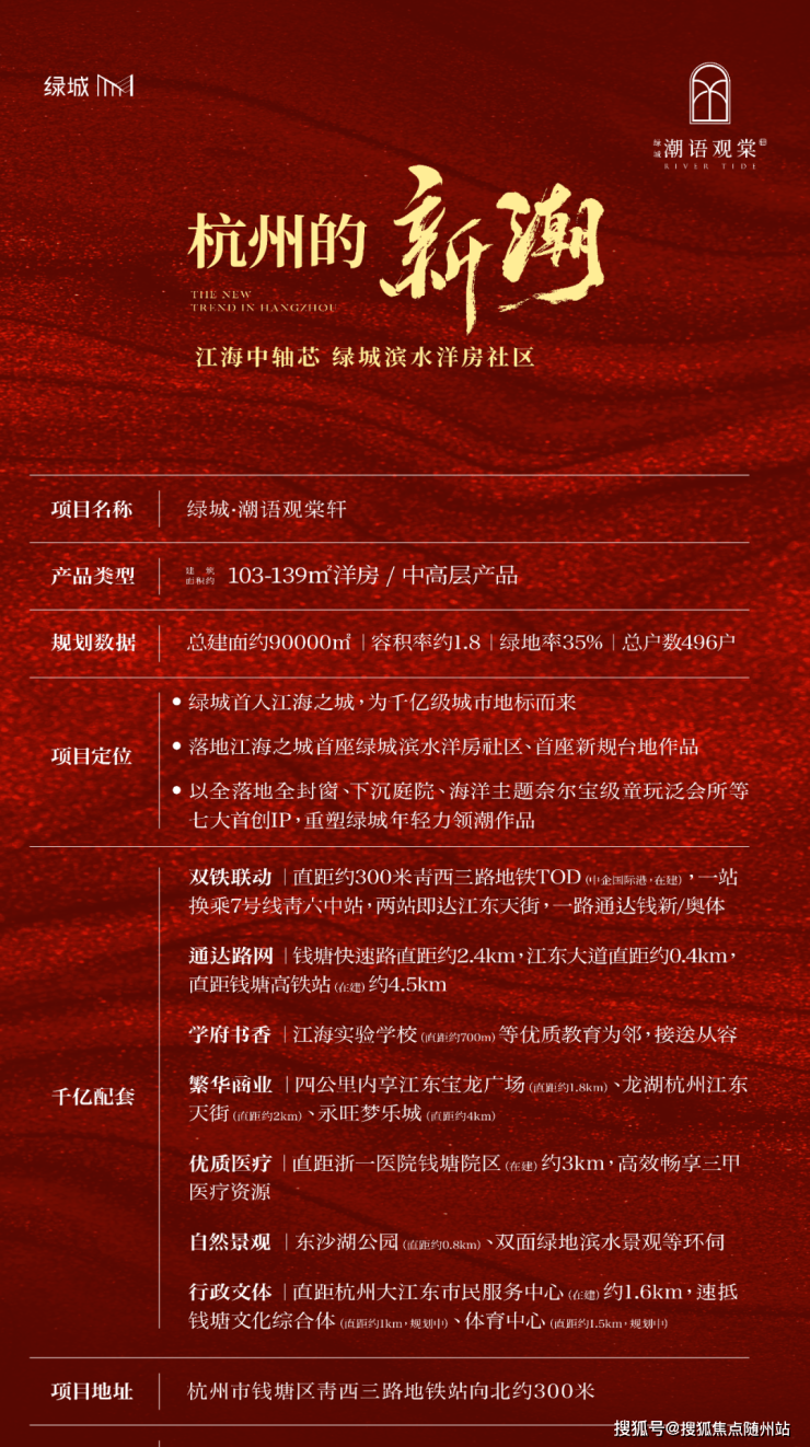 “潮”,是城市向东的时代脉搏,亦是江海奔涌的澎湃雄心“棠”,取意绿城高品质人居基因以温润秩序与审美克制回应新一代家庭对新潮人居的长期追求。
