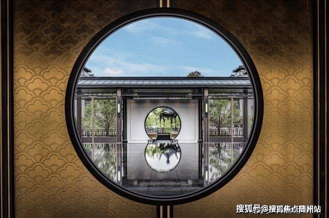 门头美轮美奂,地面上雕刻着优美的石雕,威武的石狮子彰显着气势,和2.4米的大挑檐相得益彰。此外,还有两幅仿如水墨画般的《山色空濛图》。它不像一个楼盘,更像是一座璀璨的中式大宅院,放到景区里也毫不突兀,令人心生探究的欲望。