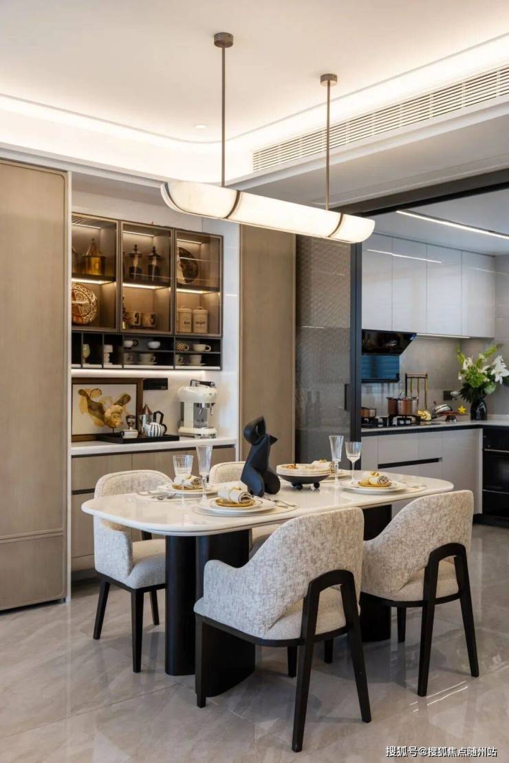 生活的秩序同样藏纳有序,玄关仪式门厅,分层分类收纳,让每一次归家都清爽利落。餐客厅以“LDKB一体化”设计打破边界,厨房定制化收纳,锅碗瓢盆各归其位,烟火气里也有秩序。这里可以是先生的会客厅,太太的美食间,孩子的游戏区,三餐四季、家人欢聚,从容上演。