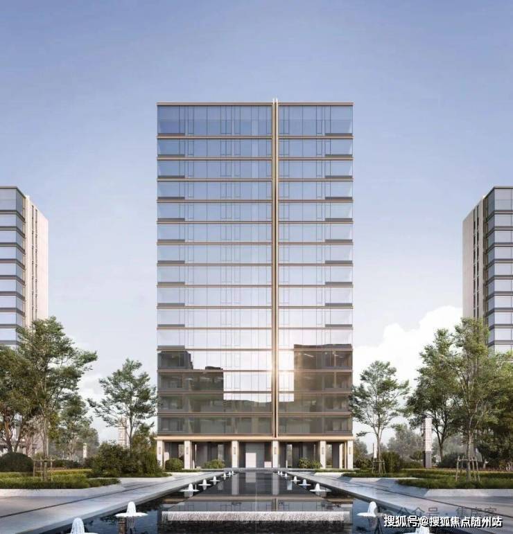 四面铝板 + 蓝灰色玻璃:延续奥邸国际立面质感,大面积干挂香槟金铝板与灰色铝板组合,南面大面积玻璃勾勒现代艺术感流线立面,叠墅石材干挂➕铝板外立面