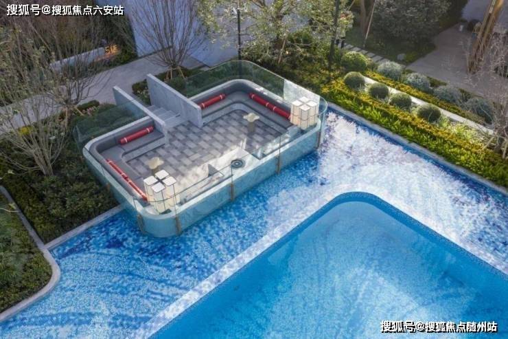 知海棠的泳池,绿城升级为了一座功能复合泳池综合体,深浅分区,动静相宜,四周以风雨连廊串联,既可远观水景,亦宜漫步池畔,容纳了游泳、戏水、休憩及社交等多种功能。