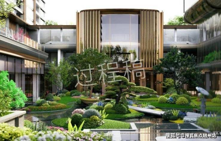 “一轴·五境·七景”叙事布局:涵盖下沉庭院、叠瀑景观、花园水池、阳光草坪等沉浸式节点,营造立体生态绿洲;