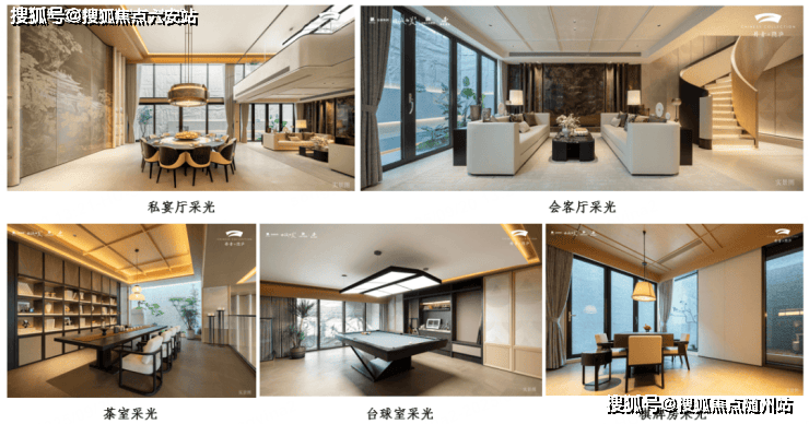 “有采光井” 不等于 “采光够用”。很多排屋项目的采光井狭小,整体采光偏暗。但丹青隐庐建面约265m2样板房用南向一字型采光井布局+超配采光井数量、南北侧超27米超长采光面,让阳光以“漫反射”角度进入地下空间,不刺眼还够亮堂;地下空间的私宴厅、茶室、台球室、棋牌室等功能区都有充足光线,彻底打破“地下=暗室”的刻板印象。