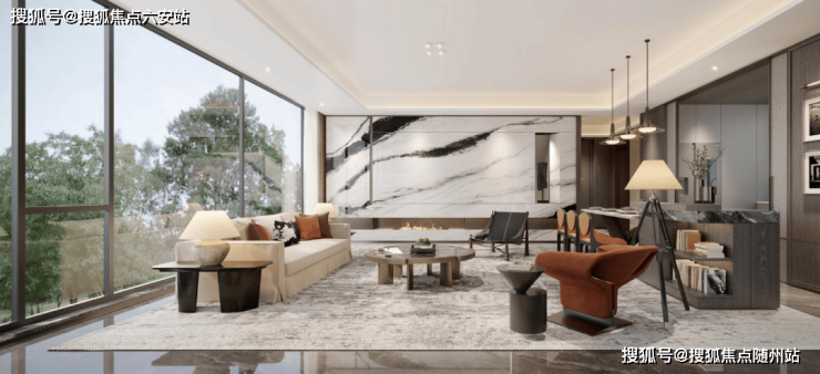 项目主入口萃取现代东方主义风格,以宋风门庭为设计灵感,宽43米、高9米,甄选18块贵重奢石,营造出隐奢与雅意兼具的豪宅门面,传递尊崇归家仪式感。这一设计展现了项目对东方美学的现代诠释。
