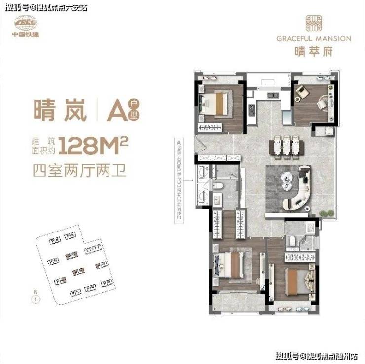 128方的户型做到了四室两厅两卫,是一步到位改善人群的最佳选择。