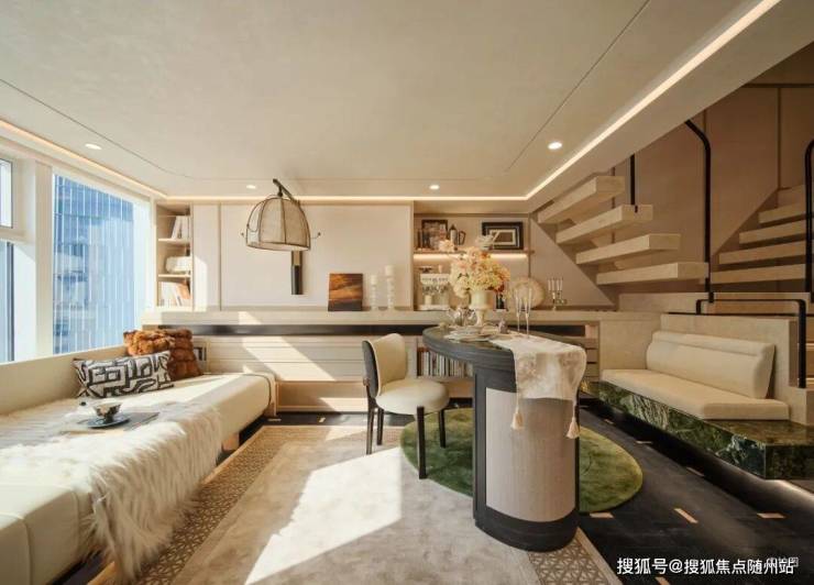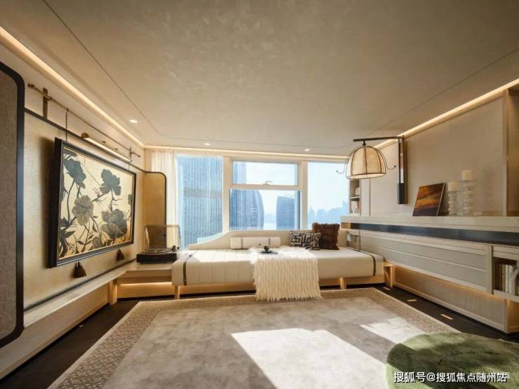 沿悬浮楼梯拾级而上,则抵达完全私密的 「双雅憩空间」。这里是与自我深度对话的领地,是安放热忱与灵感的阁楼。一面是沉浸式的「松弛空间」,另一面是功能完备的休憩领域,可开可合。巨大的玻璃幕墙,如同永不落幕的IMAX巨幕,将钱塘江的潮汐、奥体璀璨的天际线,实时放映为专属于你的城市电影。景致随心境流转,于此,静谧与辽阔达成美妙的共生。