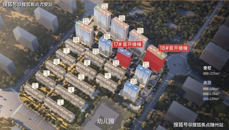 建面约108-139㎡低密高层:全新迭代升级:享低密墅级住区,视野景观、园区配套、居住体验更胜一筹,近100%使用空间;建面约225㎡类独栋式叠墅:叠墅创新之作:外立面美国白金石材+铝板,以独栋式归家动线设计,兑现独门独院、私家花园、私梯入户三重体系,上中下叠均享专属花园、6.6米地下室、私家车库,实现户户“有天有地”的墅居生活,使用率远超市场同类产品;