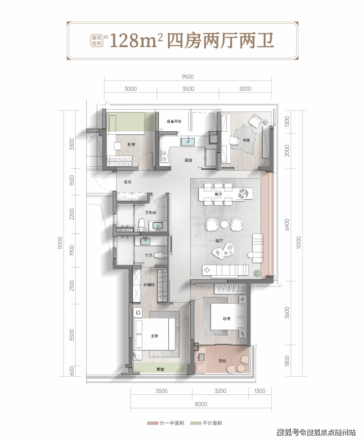 建面约128㎡西边套大四房,限量16席,将同面积段的尺度感推向极致。边厅设计,约6.4米的全落地玻璃,让家从清晨起就阳光满溢,空间通透而明亮,生活时刻充满朝气。