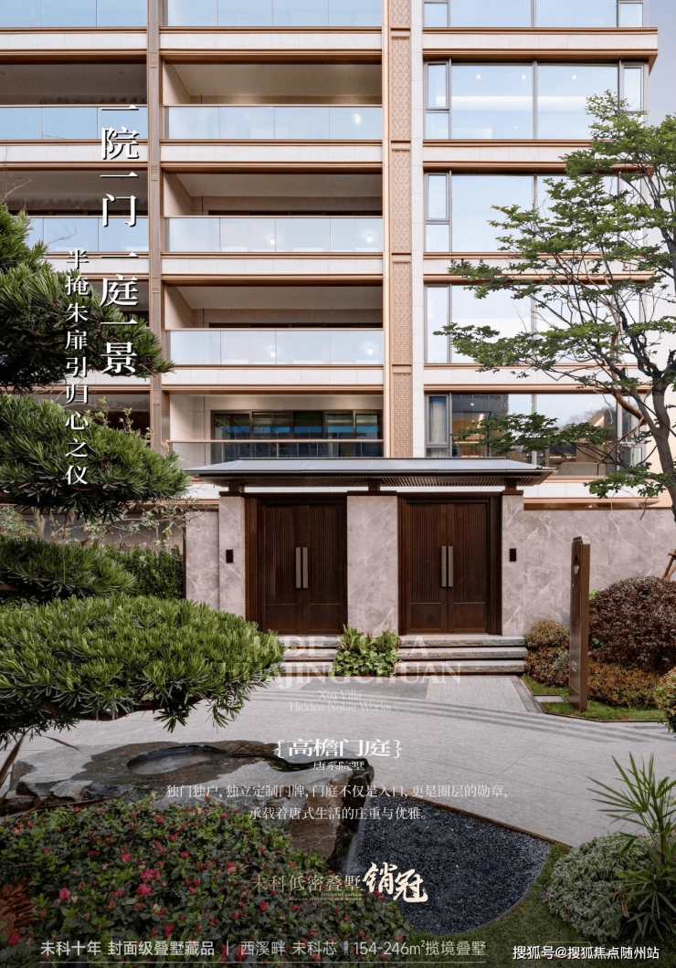 独门独户,独立定制门牌,门庭不仅是入口,更是圈层的勋章,承载着唐式生活的庄重与优雅。