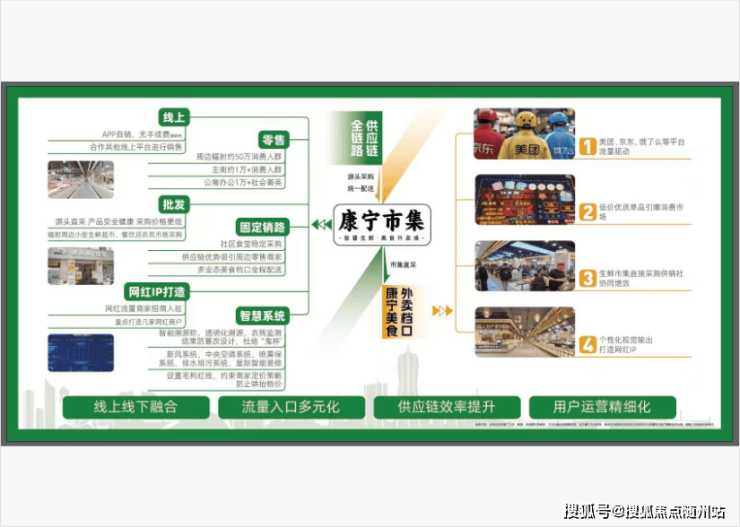 我们康宁市集和中国弘祥农产品交易城达成了定向合作,我们市集销售的菜品由他通过冷链配送直接供给,最大程度保证菜品的新鲜健康。弘祥农产品交易城总规模达到了8万平方米,是长三角地区重要的生鲜供应链枢纽。弘祥农产品交易城的后置生鲜加工仓对农产品进行进一步的处置,对采购的农产品进行统一分拣、检测,充分保证农产品的新鲜健康。最后通过冷链即时配送至市集,将最新鲜健康的农产品送到消费者手上。通过与弘祥农产品交易城的定向合作,不仅能保证我们市集菜品的新鲜健康,而且这种农业订单直采+后置生鲜加工仓的模式使得菜品的价格更加实惠和稳定。