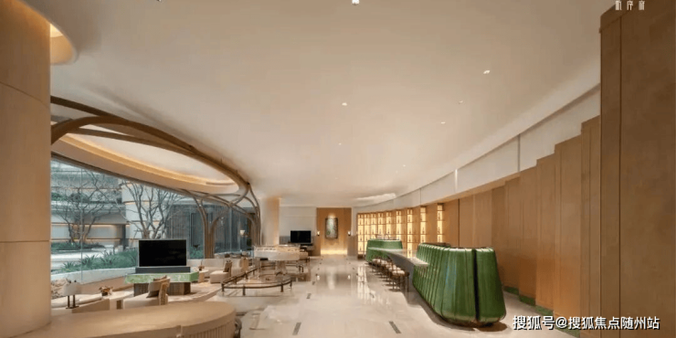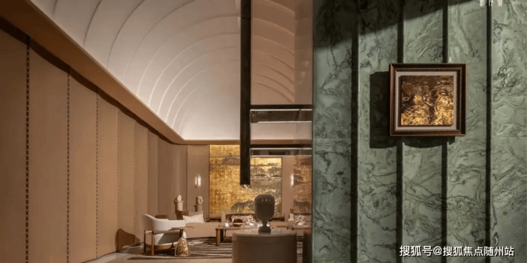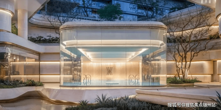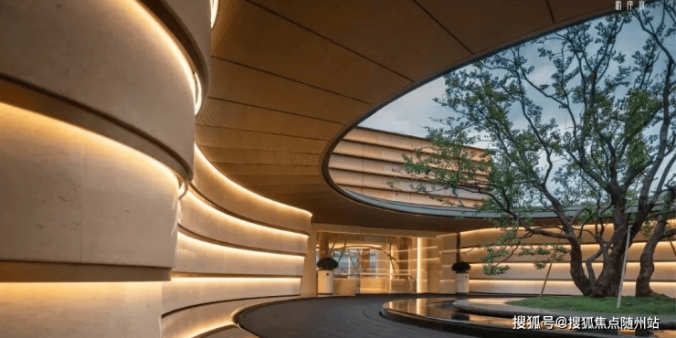 参考台北嘉佩乐酒店的叙事风格呈现第二重门厅。以一座环形的前场庭院作为业主归家的情绪整理空间,打造从繁华到宁静的空间过渡,开启度假般归家体验。