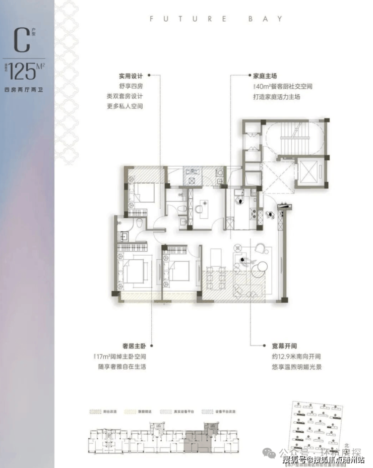 125㎡/139㎡四房:南向面宽超12米,客厅宽敞,适合改善人群。
