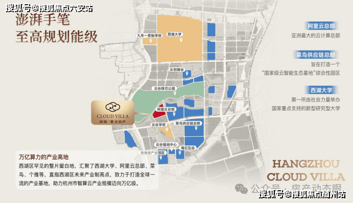 绿城观紫金宸庐,位置还要更好。它占位西湖区云谷核心C位,这一“高知汇聚、高净值人群挚爱、潜力更大的板块”,周边一流大学+密集的产业集群,已有阿里云总部、菜鸟云谷产业园、云创镓谷……还有“杭州六小龙”之一「云深处科技」也搬到了这里,片区已吸引了60余位院士、6.5万人才入驻,预计未来有超30家企业总部入驻,发展潜力不可估量。