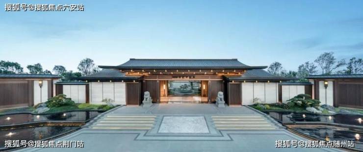 比如这一次的“建发式”大门一如既往,南北地块做了双大门设计,门头宽度达到约61米(含景墙)。入户做足了仪式感:重檐悬山式门楼、芝麻黑石材地雕、“鱼跃龙门”御道,两侧伫立着石狮、影壁、跌水、绿岛......还有两株精挑细选寓意“财富与健康”的罗汉松。