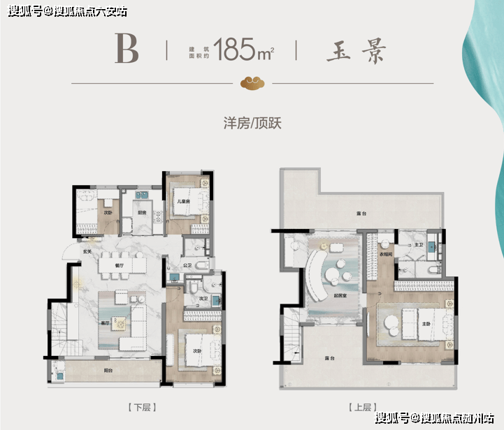 建面约185㎡上叠户型分上下两层,下层南向6.5米的超大阳台,可以将整个客厅变成一座光之宫殿。大平层中常见的LDK客餐厨一体化也被放在了上叠户型中,让整个下层空间更加通透。而在上层,整层搭载了专属于主人的巨型主卧套房+起居室,这是通常只有在千万级豪宅才能看到的奢侈尺度。