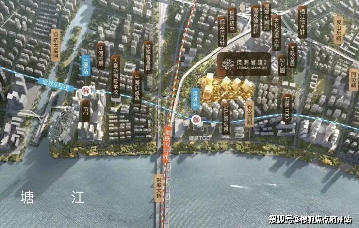 项目坐享杭州 “拥江发展” 战略要地 —— 上城区江河汇钱二核心区,距钱塘江仅 400 米,270° 俯瞰江景,城市繁华与江景壮阔无缝衔接;交通更是便捷,下楼 100 米到地铁 9 号线三堡站,1 站直达 IFC 地下层,3 公里内 16 个地铁站,全市罕见;商业顶配环绕,1 公里到在建杭州 IFC、3 公里到万象城 / 来福士,高端购物圈触手可及,还有优质学校、三甲医院加持,生活全无忧。