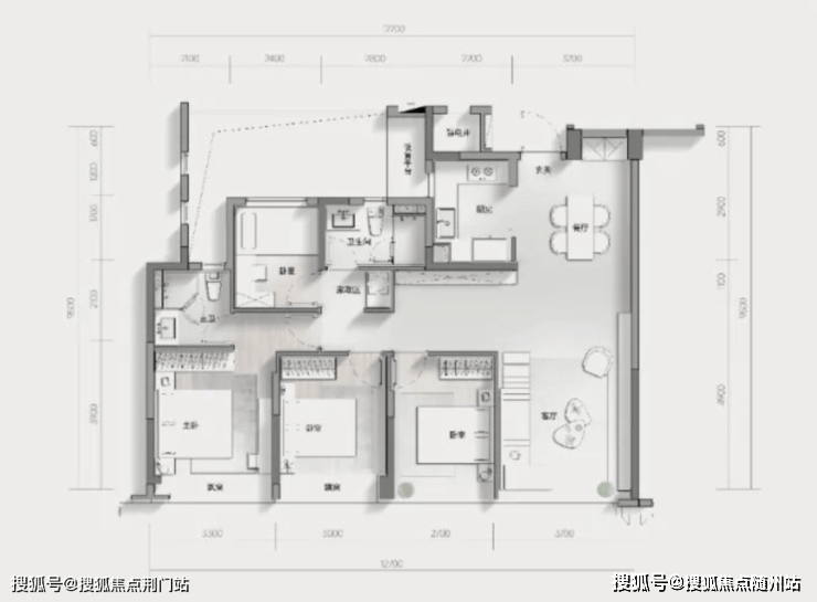 特别值得一提的是,户型设有独立电梯前厅,具备一定的私密性和收纳空间,电梯厅、设备阳台与书房互通,在可改性上也留有空间想象力。