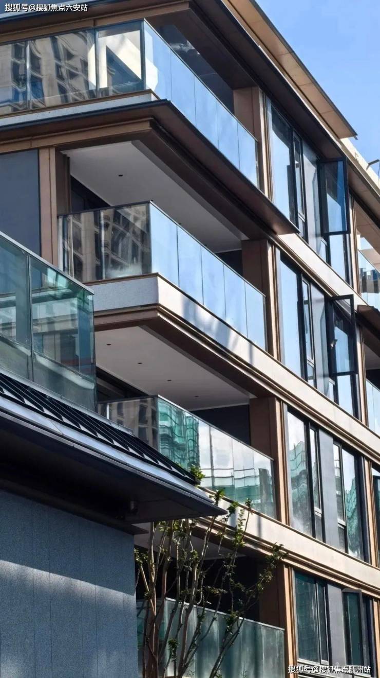 承袭宋韵 华贵的金色立面 项目以现代审美和设计手法,提取中式美学造极时代的宋式美学,排屋、叠墅立面首层采用大面积淳如玉釉的白色石材,二层及以上立面以大量金色勾边营造,古铜深色作为檐口插色低调内敛而富有华贵意蕴建筑。项目以宽屏窗墙比,大面积玻璃材质,构造立面轻盈无界感,并以简洁细致的窄边主义整体构图,同色系窗框处理,让建筑更具当代的清雅感受