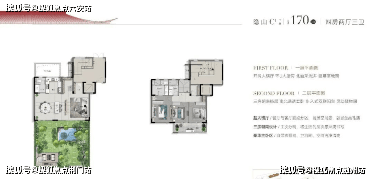 上叠C3户型“花源”建面约177㎡,正如名字一般,四季如花盛绽:一层南向约5.6米大阳台,北向超6米大进深露台;二层南向约5.6米大阳台,北向约3.65米大进深露台;顶层奢配近100平米超大露台,三重露台格局,赋予空间不同层次感的景观奢享体验,大手笔珍贵难觅。