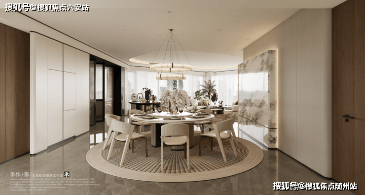 创新空间设计:采用LDKB一体化方厅设计,公区面积超90㎡,南向开间达19米,可容纳8人圆桌宴会。270°环幕视界将奥体盛景与钱塘江潮尽收眼底,主卧奢配独立家政间、双台盆卫浴。