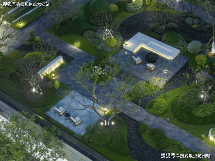 池底精心铺设的天然石材,在水中折射出梦幻的光影,两侧整齐列植铁冬青、丛生香橼与朴树,阳光透过枝叶洒落斑驳光影,营造出轻松惬意的休闲氛围