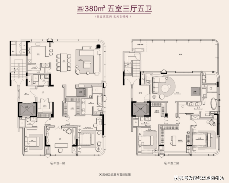 经过一系列优化改造后,咏印明庐约380㎡顶跃户型为五房三厅五卫格局,整体拓展面积高达约117㎡,实现了超高的得房率。