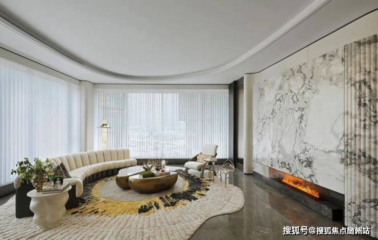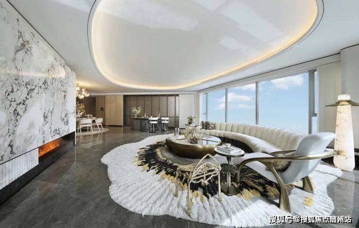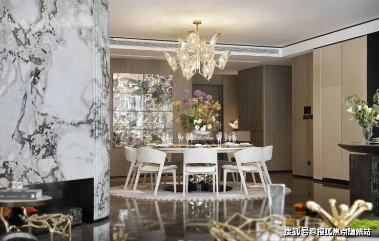 弧线造型的木饰面、多种肌理的艺术玻璃、官方售楼处电话: 400 816 3856水墨色调的雅士白大理石,摩登而明媚,将舒适度与仪式感调和得水乳交融。
