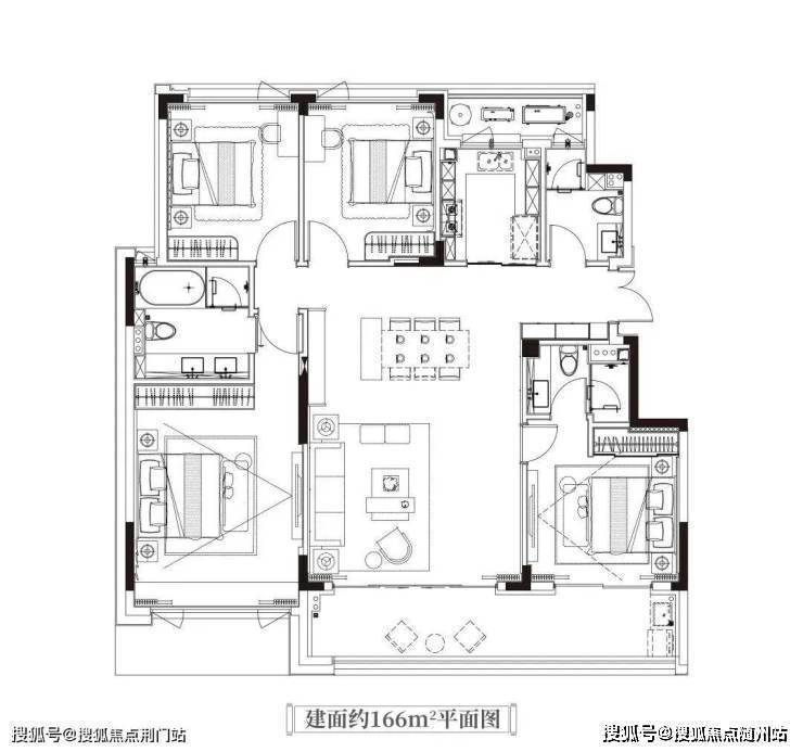 建面约166方洋房户型,朝南大客厅,连接着超9米的阔绰双阳台;客餐厅各自独立,精心规划了流畅动线;三卫的设计,对于两个小孩或三代同堂的家庭来说,使用也更加方便。🔻售楼热线:☎ 400 832 8823「售楼处」☎〢网上售楼中心〢🔻