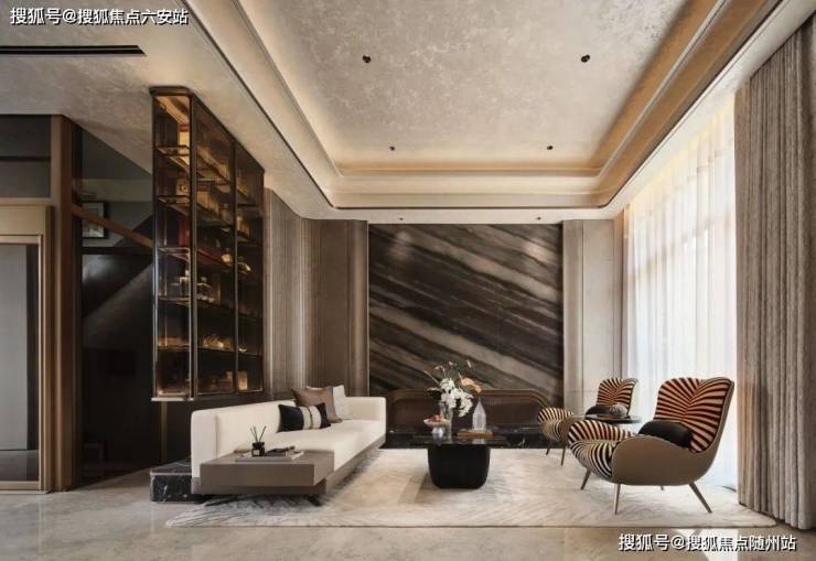 空间运用不同高端材质,其独特的纹理和光泽彰显出奢华的气息,确保了最佳的色泽和纹理搭配,咖色为整个空间奠定了高贵典雅的基调。设计团队并将现代艺术融入日常生活,创造富有创意和活力的空间。