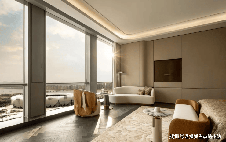 再走进样板间,这是两套接近「手工高定」的奢华世界,有着足够写实的生活细节丰度。建筑层高约4.3米,远超一般大平层的3.4米,搭配270°落地玻璃,是那种能让荷尔蒙瞬间爆表的气场。