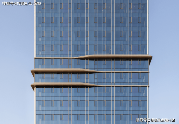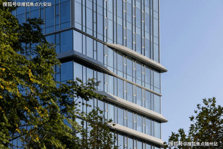 外立面:大面积淡蓝色玻璃幕墙搭配银灰色铝板线条,形成纤细雕塑感的轮廓,兼具现代极简与古典韵律。独特的“钱江潮”腰线设计,如白玉腰带般璀璨,成为区域视觉焦点。