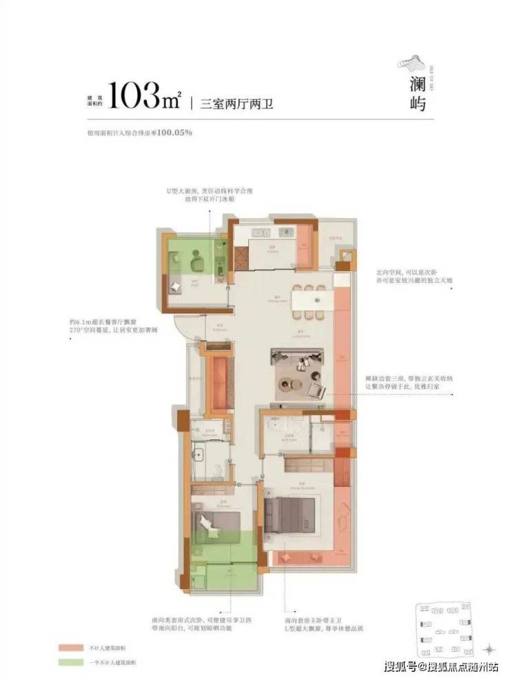 以沐芳洲建面约103㎡户型为例,赠送面积超过了25.5㎡,仅飘窗赠送面积就有约13.9㎡,实际使用得房率高达100.05%!