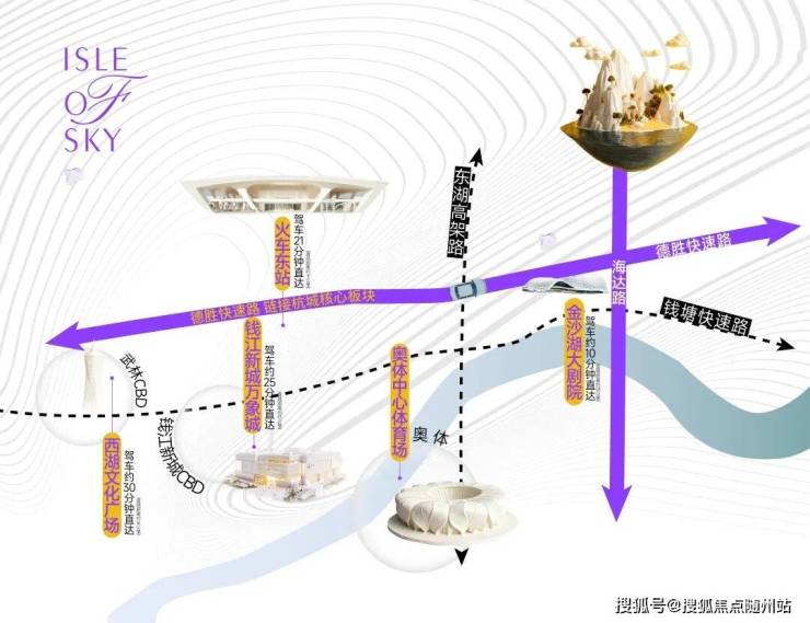 钱塘区首个半地下室架空平台、城市浮岛、艺术公区、七岛洄游
