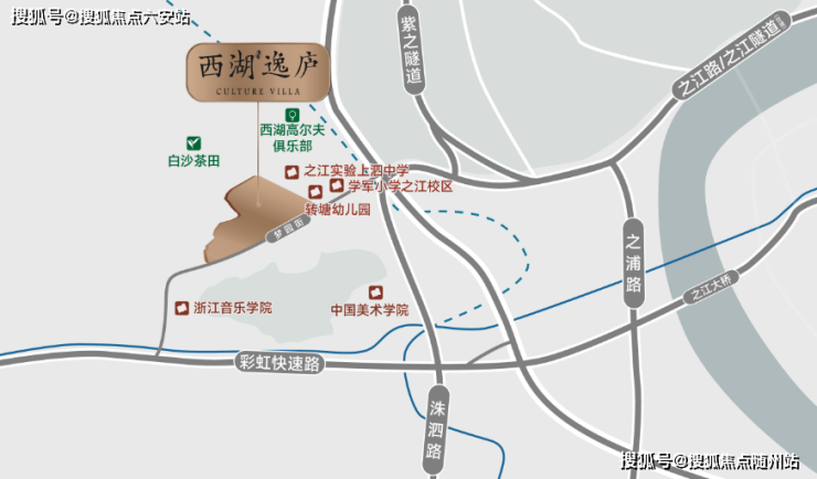 项目距离地铁6号线美院站直线约1.3公里、规划12号线站点直线约1公里;200米中国美院,一路之隔浙江音乐学院,毗邻江文化中心“浙江四馆”,背倚白沙茶山,北接约4000亩西湖高尔夫球场(本届亚运赛场),轻松享有品茗、挥杆的乐趣。