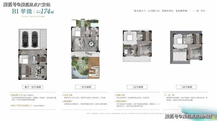 产品主力为174-239㎡的合院户型,采用类独栋设计,在保证私密性的同时,兼顾合院的社区氛围。户型设计强调“大开间、大花园”的特点,多数户型配备前庭后院,部分产品拥有一线湖景与背山面水的格局。室内空间注重通透性与流动性,通过大面积开窗引景入室,提升居住舒适度。