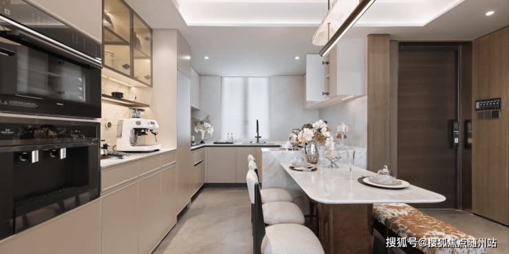 小区采用半抬高地库的创新设计,邀请了知名的建筑设计院量身定制,立面风格采用经典公建化立面,四面铝板搭配大面积玻璃,封包阳台,整体精致通透,底层以浅色天然石材为主,额外做了圆弧细节,轻盈洒脱,尽显优雅格调。