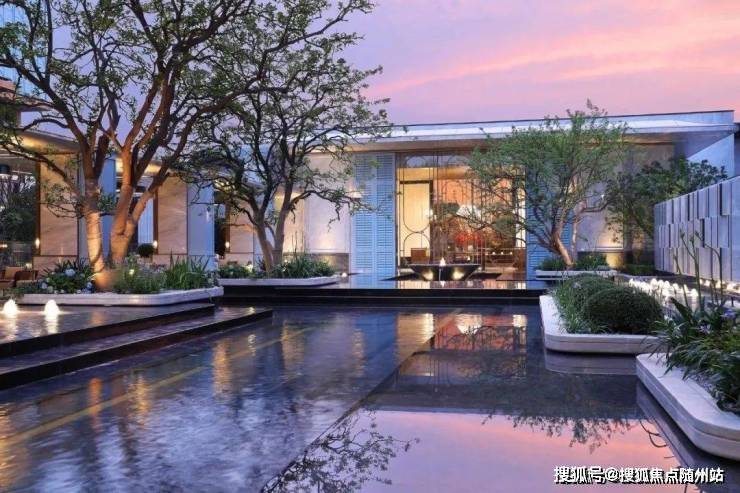 项目内部公区仪式感十足,西面小区人行入口处特意做了门厅,小区门厅、商务人行出入口均位于西侧松合路,向里走是双景观水系,中心花园,集中绿地,下沉式庭院,室内恒温泳池,健身房,瑜伽室等等