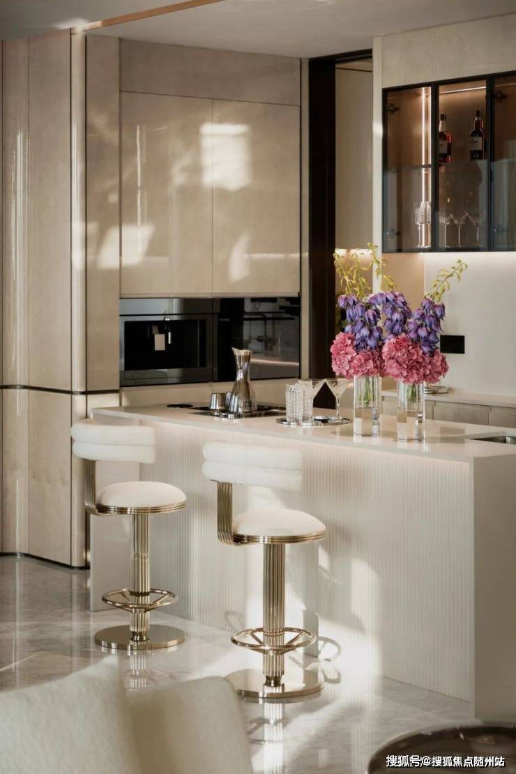 兰博基尼御用设计团队SWS操刀,流线型金属格栅、碳纤维纹理墙面,将Huracán超跑的凌厉线条融入家居;