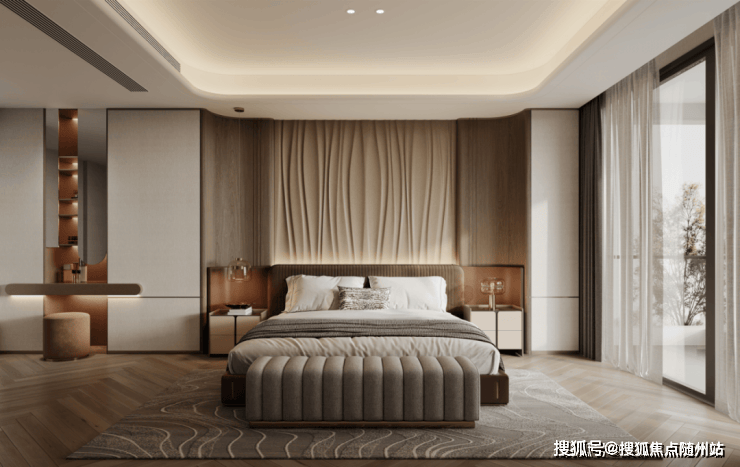 除了品牌豪华,安云玖院的精装品类也极致全面。通常,住宅精装修都将定制的衣柜作为额外加载配置,而安云玖院每一户都标配定制家具及木饰面护墙板,更是使用了进口影木、雀眼等名贵木皮饰面烤漆工艺。