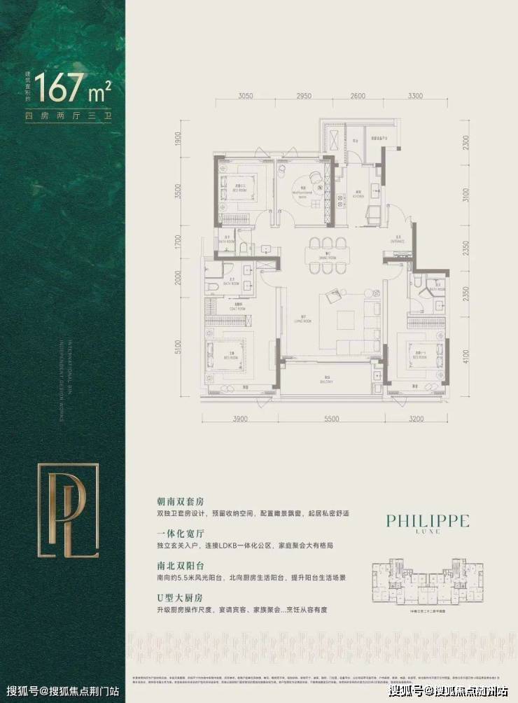 而建面约167㎡则是四房三卫格局,双套房设计,约40㎡的剧院式横厅,客餐一体,气场全开。市北、滨江的不少改善家庭,都在等它上线。
