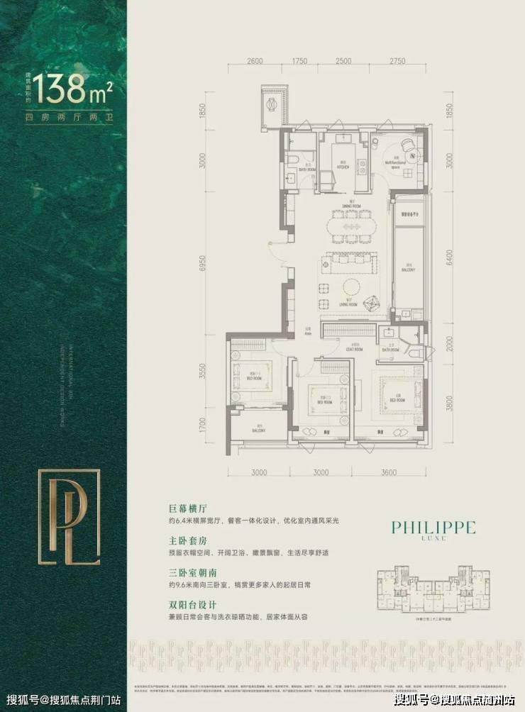 建面约138㎡是全明边套,三面采光,270°环绕视野。配上约6.4米横厅与大阳台,像一块被阳光浸透的生活幕布,日常就很有度假感。