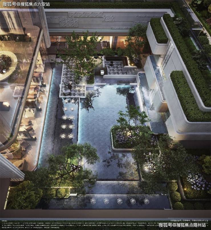 精心选用的树种和叠水成为游泳、慢跑、瑜伽,每一项活动的背景封面。