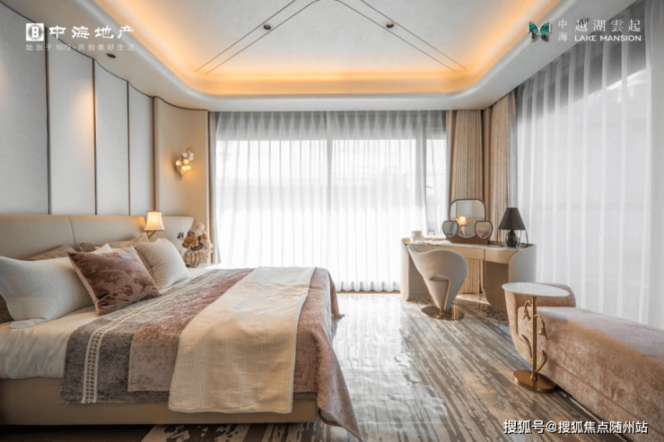 主卧似一间优雅的酒店套房,集步入式衣帽间、豪华主卫于一体,营造出极致私享、奢华舒适的休憩之境。