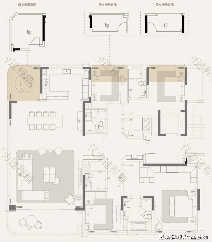 天澜传序府建筑面积约265方的户型,更是直接就做出了大平层,才有的尺度感——