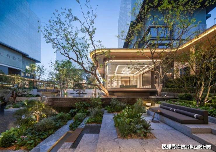 拾级而上,天光云影与建筑无界相融,丛生香橼、丛生乌桕、桂花、绚丽海棠等树种交织,营造“写意山水,四季花园”的自然韵律,整个社区仿佛“漂浮”于土地之上,步移景异间,江岸栖居的独特质感扑面而来。在这里,景观不是平面的铺陈,而是层叠展开的立体剧场——生活,也因这片台地,轻盈漂浮,俯仰皆景。