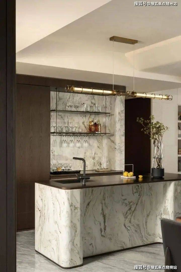 公区精装上更是不惜耗费时间和金钱反复严选,选定源自克罗地亚的贝金米黄大理石作为墙体,自然的纹理加上手凿雕刻处理,粗粝与质朴交织,是艺术肌理与摩登东方的对话;地面通铺意大利喜马拉雅灰天然石材,肌理错峰层迭,将沉稳纯雅的气质蔓延到整个空间,☎【售楼热线】:400 816 3856 ☎⫷带来了开阔的视野与洒脱大气之美;山水画奢石打造中岛台,流淌的诗意,氤氲的山脉,再经过其弧面工艺处理以及与柜体金属装饰线条的糅合,让自然之美浸润每个非凡日常。严苛的选材和精致的工艺,赋予瑞系300超越市场期许的审美与品质,勾勒出高净值客群心中的未来峰境。