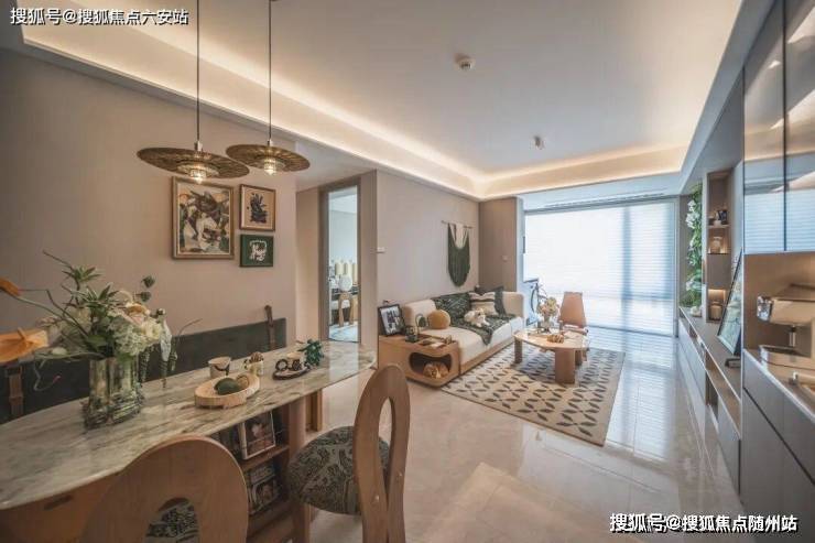 建面约103㎡的边套更是堪称神迹,将小户型的空间魔法玩到了极致。客厅到阳台的地面、天花直接拉通,甚至两侧的墙垛都已隐身,整个餐客厅面积达到约35㎡(含阳台),这可是140㎡以上大宅才有的空间感!