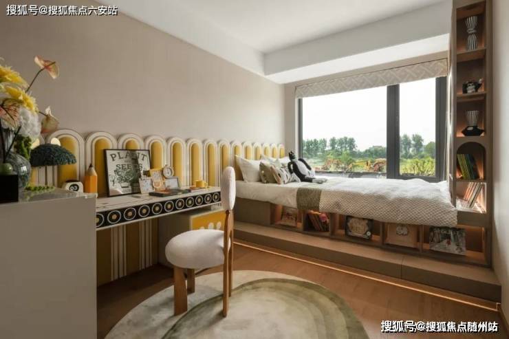 你也可以在餐客厅中加一扇L型隔断,将整套房子变成“3+1”格局。玄机仍在阳台,它不是一条线拉平,在向外凸出的一角,足以隔出一间约2.2*2.2米的茶室、书房,或是儿童游戏区,成为无限灵活的“MAX空间”。